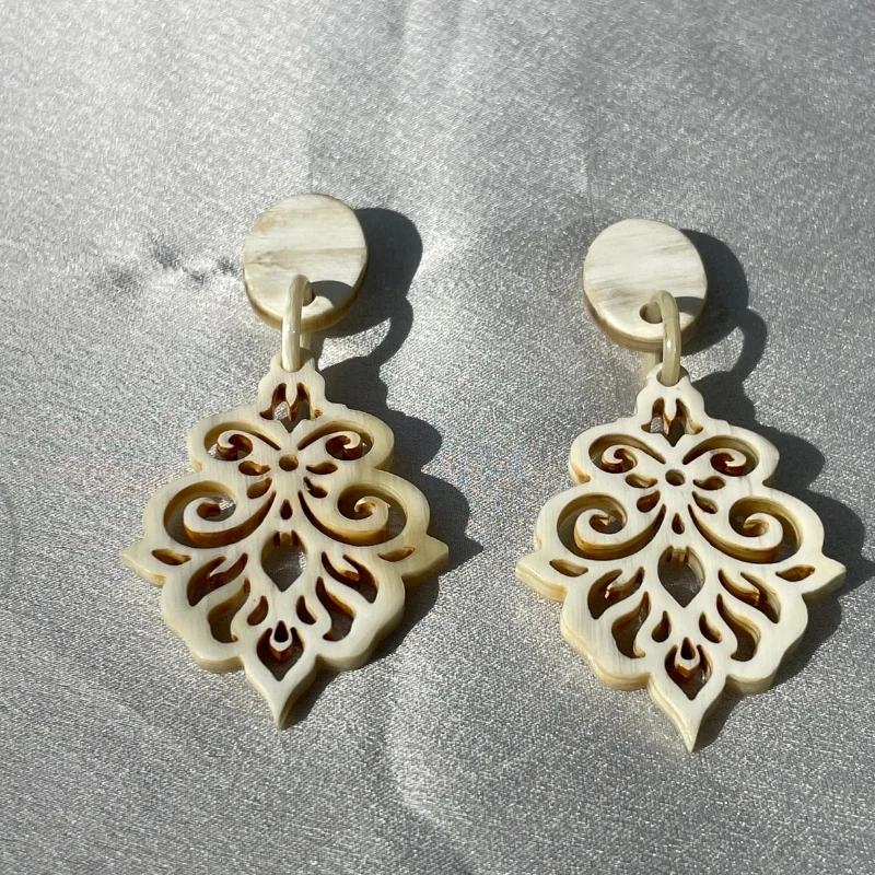 Bông tai sừng là dòng sản phẩm mang đậm dấu ấn thủ công truyền thống, được chế tác tỉ mỉ từ sừng tự nhiên – chất liệu quý hiếm và thân thiện với môi trường. Qua bàn tay khéo léo của nghệ nhân, từng đôi bông tai được tạo hình tinh tế, giữ nguyên vân sừng tự nhiên độc đáo, mang đến vẻ đẹp mộc mạc nhưng sang trọng và cá tính.