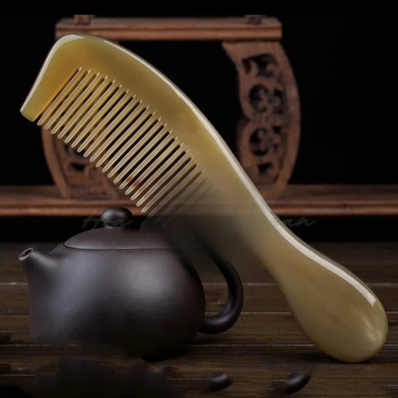 Lược sừng được chế tác thủ công từ sừng tự nhiên nguyên khối, không qua xử lý hóa chất, mang lại trải nghiệm chải tóc êm ái và tốt cho sức khỏe da đầu. Nhờ đặc tính không tạo tĩnh điện, bề mặt mịn và răng lược trơn đều, lược sừng giúp giảm gãy rụng tóc, ngăn chẻ ngọn và kích thích tuần hoàn máu khi chải.